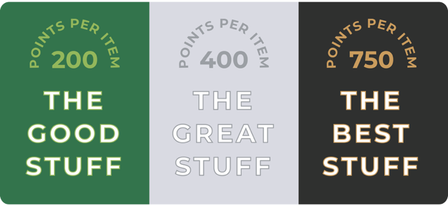• Points are calculated per submission. Any unused points remaining after a reward is redeemed do not carry over to future submissions.